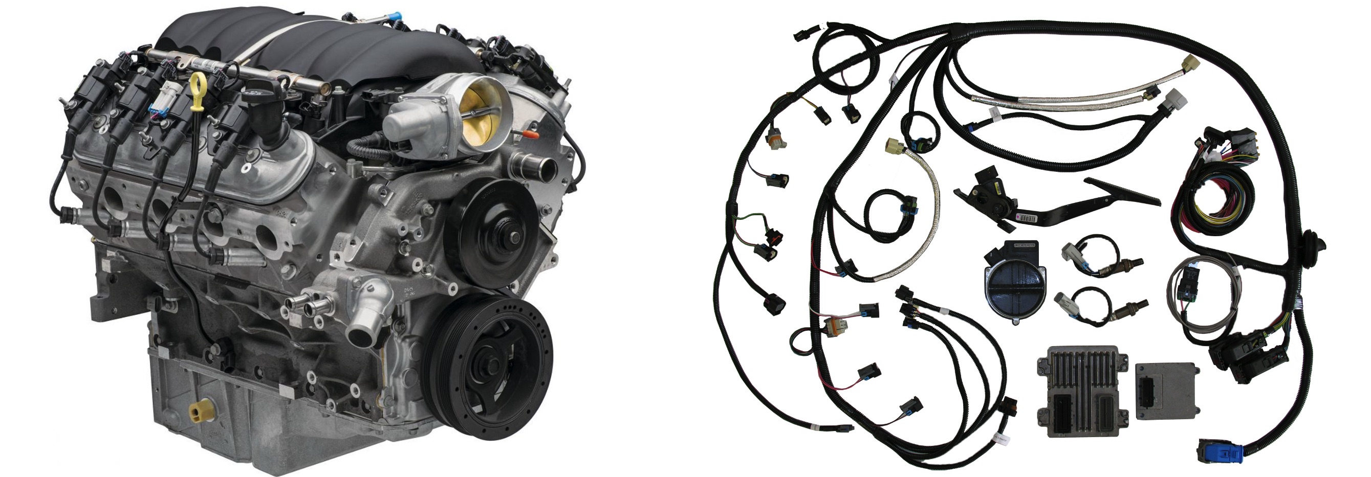 LS3 Intake - LS3 Drive-by-Wire Throttle Body - LS3 Injectors - Fuel Rail (Deadhead) - LS3 Performance Heads - Stage 4 Comp Cams Camshaft - LS3 Hydraulic Roller Lifters - Dual Coil Valve Springs - Hypereutectic Pistons - Powder Metal Rods - LS3 Crankshaft - Corvette Factory Ignition Coils - Ignition Coil Harnesses - Spark Plugs - Spark Plug Wires - (Note that factory headers are no longer provided by GM)