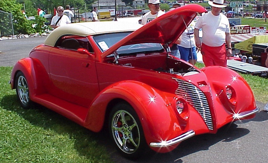 This is definitely not your normal 1937 Ford. Notice anything different? Figured it out yet? This '37 is running one of (if not the first) Southern Performance System's C5 Corvette Rolling Assemblies that was sold. The amazing thing about this is Dean did not cut any of the C5 torque tube. He modified the body to fit the C5 Assembly. He only lengthened the front suspension. On the body, he added width to the fenders, both front and rear. Check out the working convertible top, First of its kind at the time.