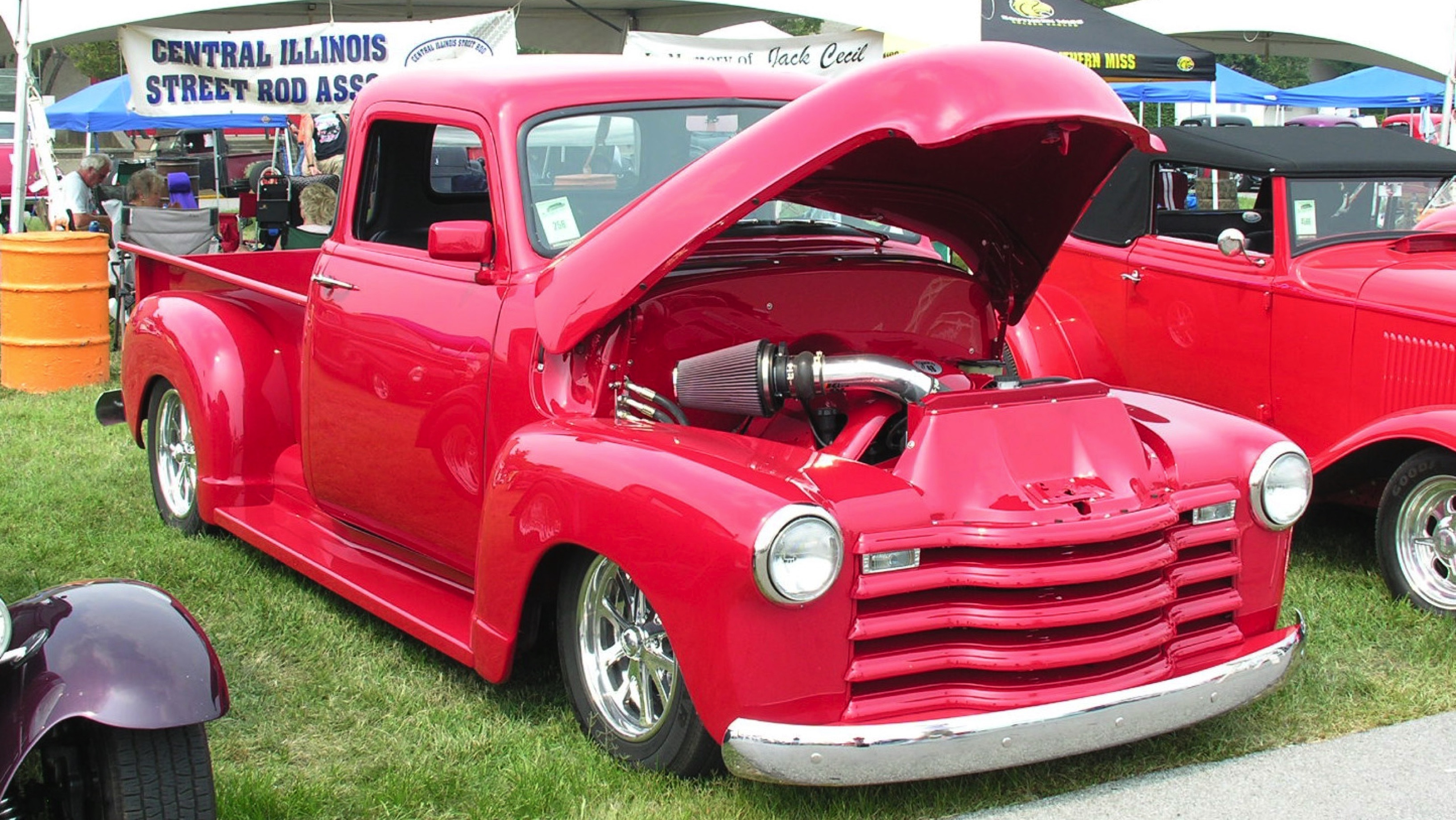 The 1955's frame was built by Bohannon Concepts with a Corvette front and rear setup. The paint job and upholstery work was provided by Allon's Body Shop & Upholstery (931-858-2716). Dupont Hot Hues was the paint brand of choice: Raspberry Candy & Silver.