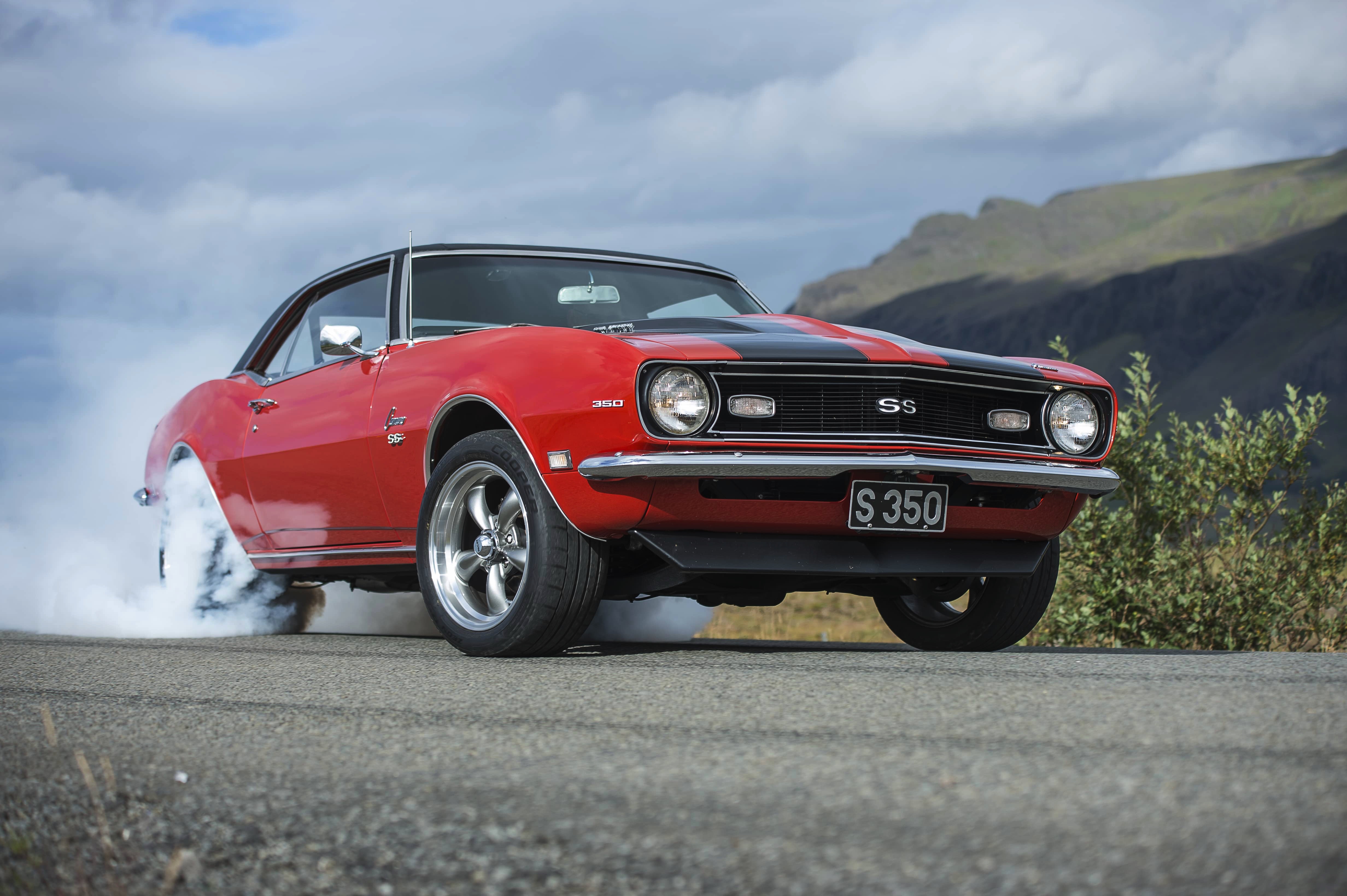 This 67 Camaro belongs to Skuli S in Iceland. Not satisfied with the performance of the SBC, Skuli contacted SPS regarding a LS conversion. After many phone calls and emails we shipped two boxes of parts which included no less than Southern Performances LS3 / 480 HP engine - 4L70E transmission "Turn-Key" package with harness, programmed ECM/TCM, billet front runner kit, & correct oil pan. Skuli also purchased SPS's LS conversion package with radiator, headers, engine /trans installation kit, EFI fuel tank and fuel line kit. The front end was upgrade to a new sub frame, spindles, Heidts tubular upper and lower control arms, AFCO hydraulic adjustable coil over front shocks & Sway bar. A four link was installed in the rear with a 9" Ford housing. Wildwood 4 piston calipers, red of course, with drilled and slotted rotors for imrpoved stopping power. To be able to monitor how the engine works - RPM's and MPH Skuli also ordered a Dakota Digital gauge cluster which is a direct fit into the '67 dash.