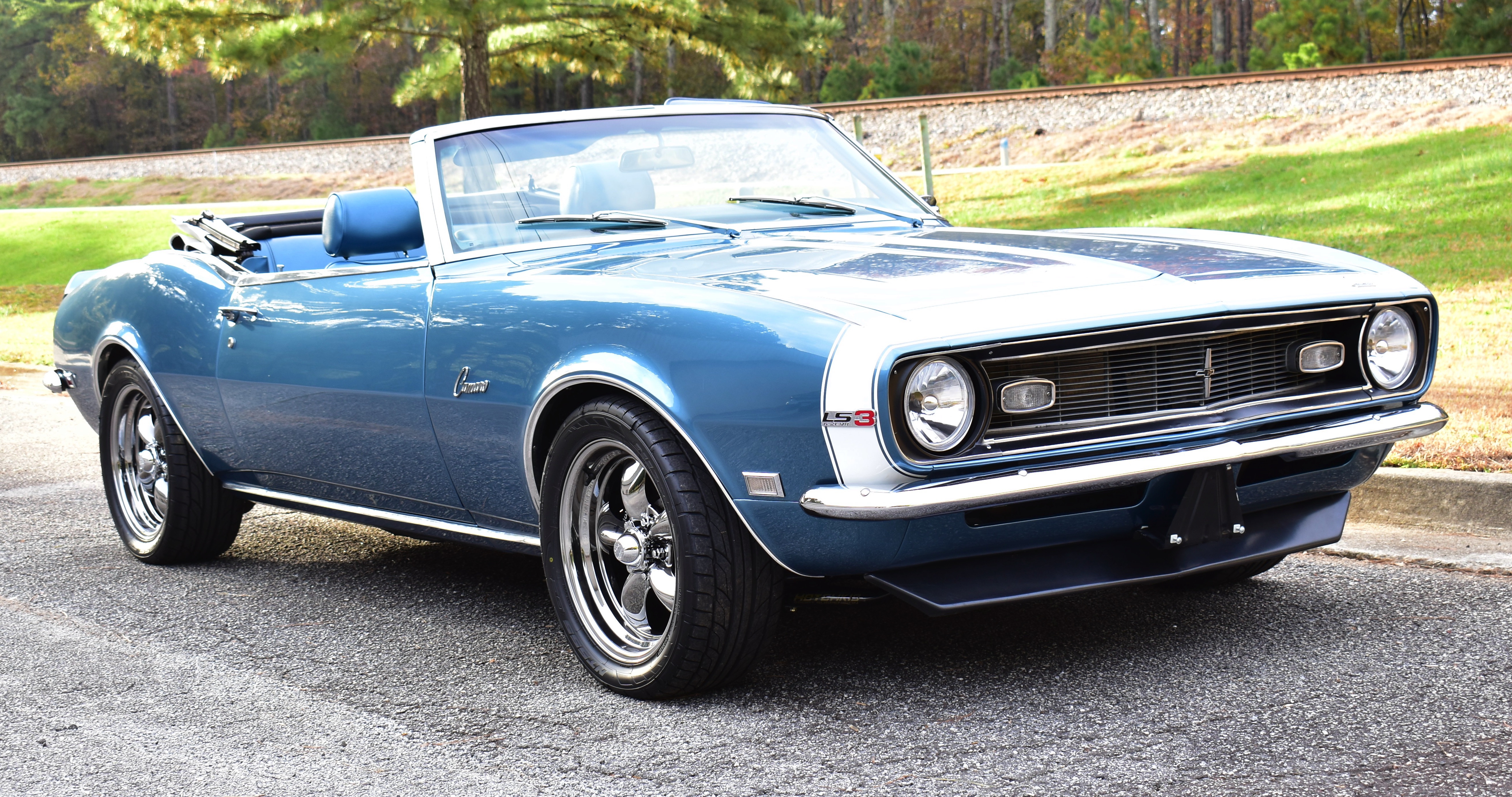 This Blue and White beauty belongs to Delbert Sullivan, who asked us to perform a LS Restomod on his classic muscle car. This is a 1968 Camaro that had a Chevy 350 installed, the motor still ran great and had plenty of power for Delbert when he bought it brand new during his high school days. Delbert wanted a modern engine with lots of power so we transplanted in our 560+ horse power ProStreet LS376/560 sysytem. We also be updating the Camaro's dash to a Classic Dash Display with AutoMeter Pro Street Gauges.