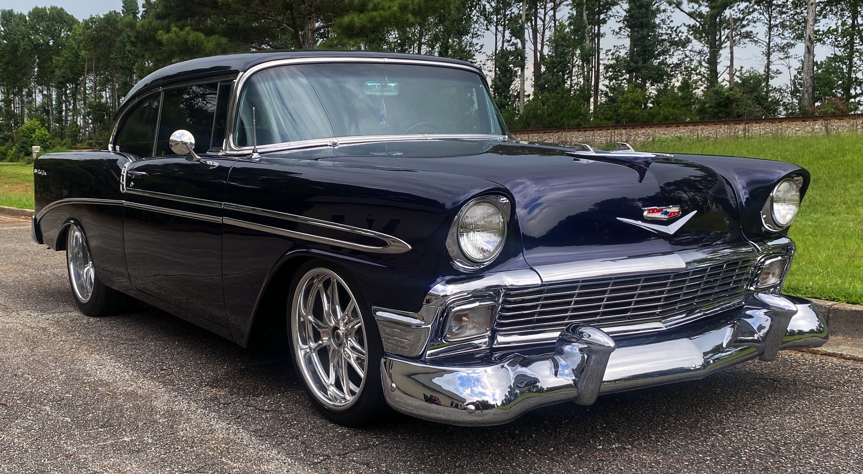 This is a 1956 Chevy Bel Air with a ProStreet LS376/560 Engine with 4L70E Automatic Transmission installed by Southern Performance Systems. Tthe engine punches out 560 horse power which turned this classic car into a modern rocket. Our customer had already purchased an air ride suspension from RideTech with a trianglar 4-link with 9-inch Ford rear end. Every classic update requires a new fuel system with updated fuel tank and in-tank pump that supply 58psi of fuel pressure to the engine. Increased the stopping power with Wilwood brakes, and improved the steering with a flaming river column and power steering box. Updates to the interior include Vintage Air AC system, Dakota Digital gauges, Lokar floor shifter and powered seats.