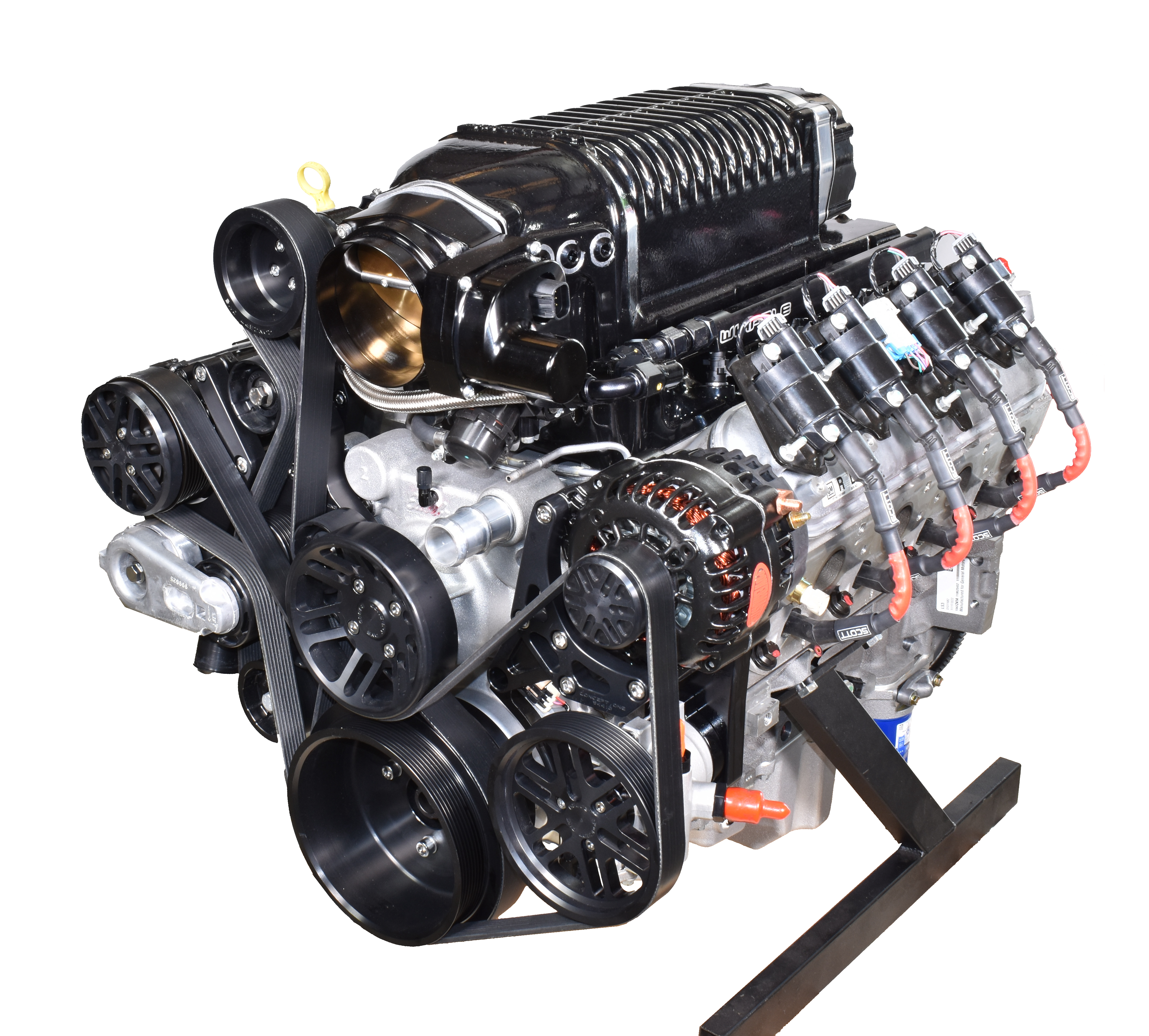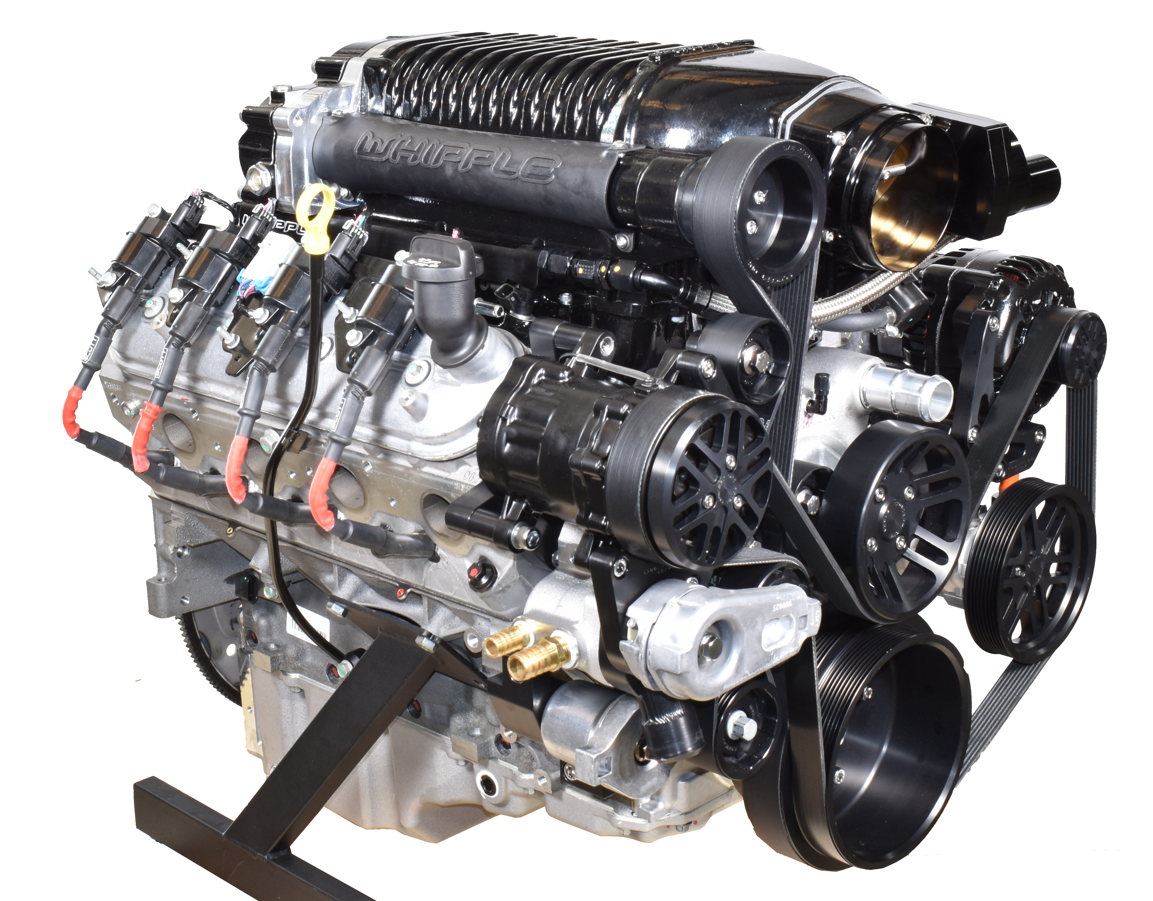 Whipple Supercharger - 102mm Drive-by-Wire Throttle Body - High Performance Injectors - Fuel Rail - LS3 Performance Heads - Comp Cams High Performance Camshaft - LS3 Hydraulic Roller Lifters - Performance Valve Springs - Hypereutectic Pistons - Powder Metal Rods - LS3 Crankshaft - Corvette Factory Ignition Coils - Ignition Coil Harnesses - Spark Plugs - Spark Plug Wires - Starter - ARP Bolts