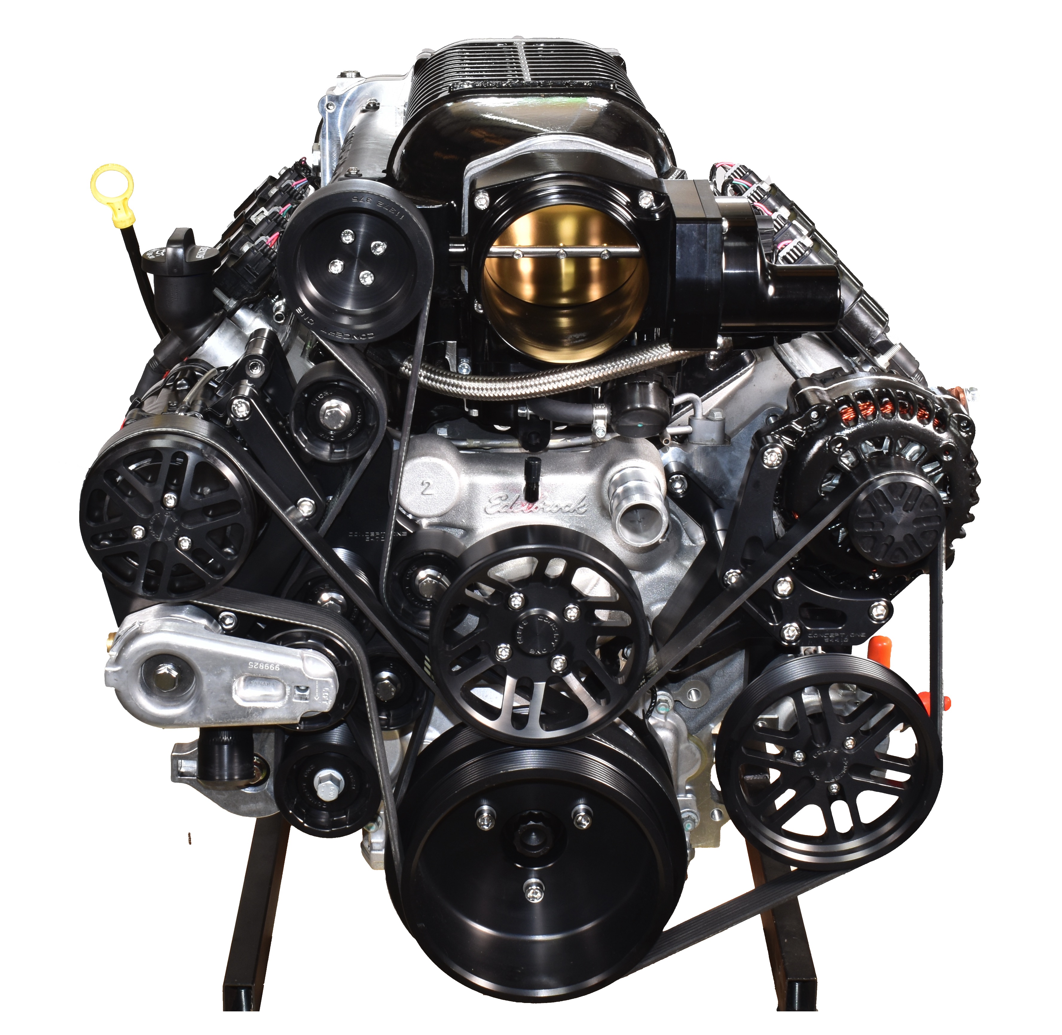 Polished Alternator - Power Steering Pump - Tensioner - Fluiddampr - Water Pump - Polished AC Compressor - Polished Billet Pulleys - Polished Billet Brackets - Polished Thermostat Housing