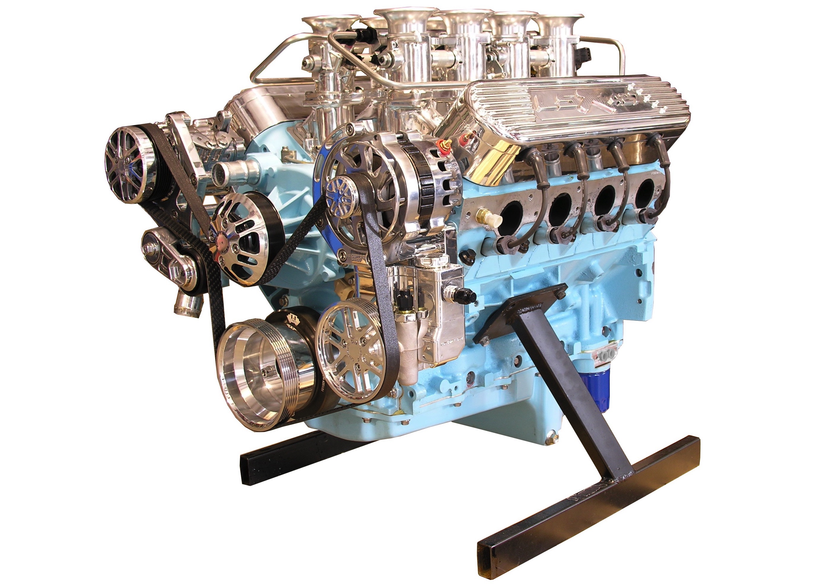 This LS3 Engine features a Ingeles Fuel Injection System and Polished Billet Serpentine System. Custom Deep Blue paint job includes block, transmission, timing cover, heads, starter, and injector system.