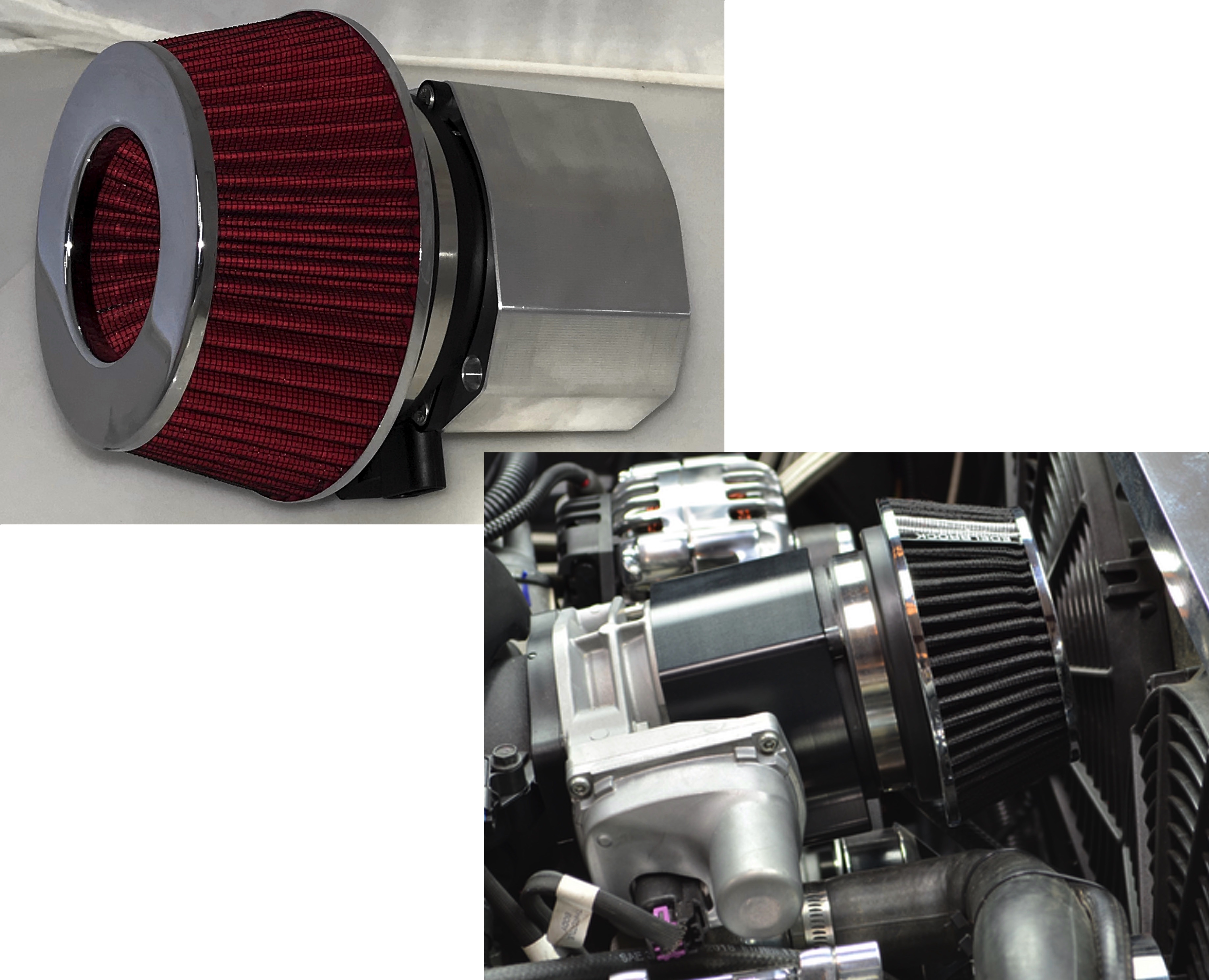 The return of the Hidden Mass Meter Billet Air Cleaner with New and improved design. Designed to work with 4 bolt LS engine throttle body, these new billet air cleaners bolt directly to the throttle body and are sealed with special o-rings. Good for up to 535 HP. Includes Billet MAF Housing, MAF, Filter, and Hardware.