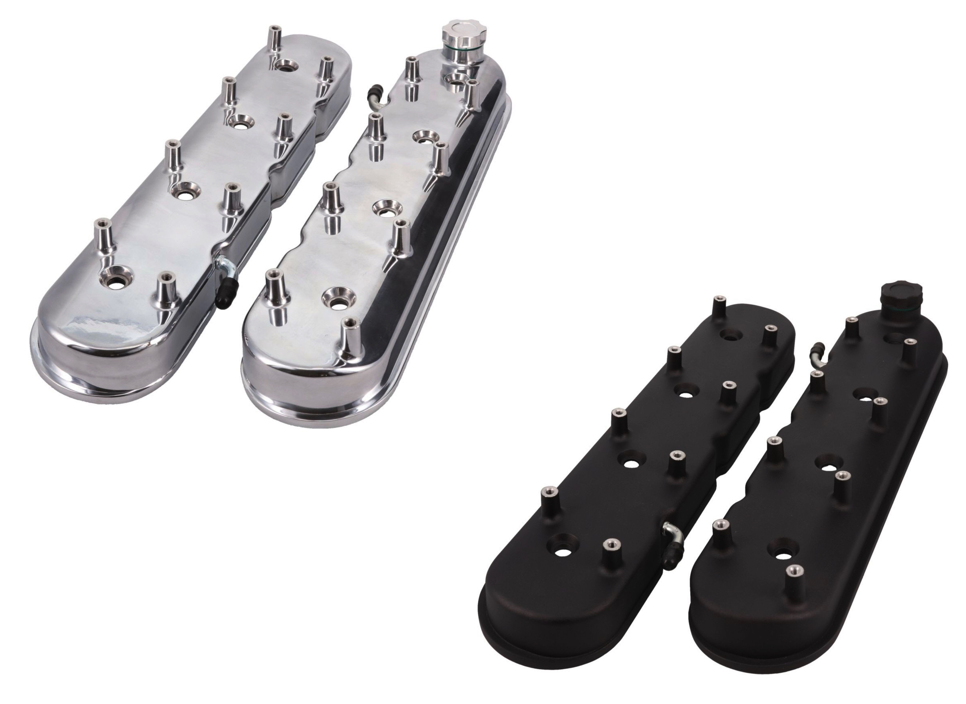 2-piece LS valve covers designed to help easily hide and mount LS2 style coils underneath the included over-covers for a clean look. Also features a baffled stock-style ventilation set-up.