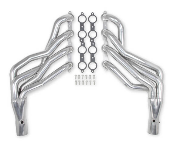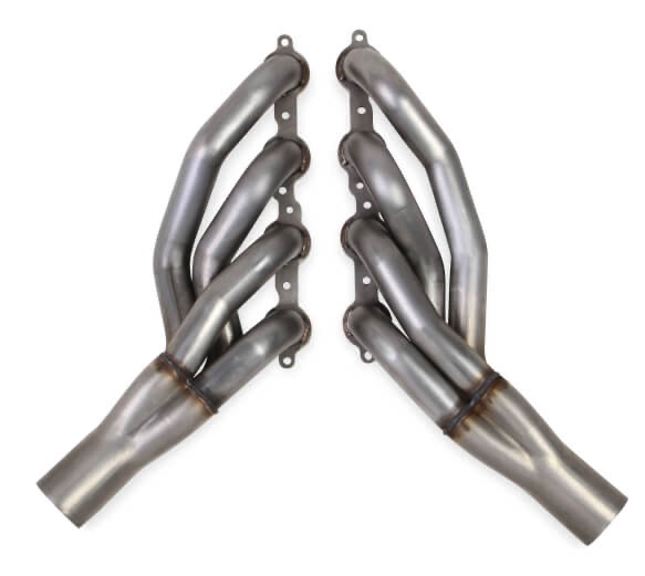 - Full-Length (Long-Tube) Headers — The top performer for maximum power, especially on boosted builds. Equal-length or stepped designs optimize scavenging for broad torque and high-RPM pull. Great for street/strip or high-hp setups (e.g., 1-3/4" to 1-7/8" primaries, 3" collectors). Brands like Hooker Blackheart, Hedman, and Ultimate Headers, offer excellent vehicle-specific options with proven fitment—no major frame notching required in many cases.