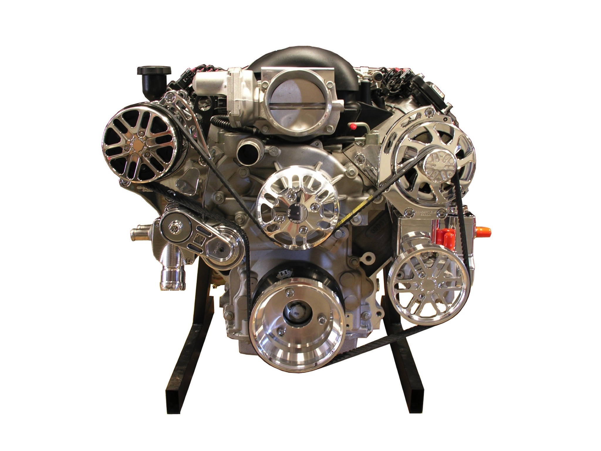There are different styles of Front Runner Serpentine Drive Systems available for LS and LT series engines. GM offers several setups all designed for production vehicles. These work in a limited number of classic cars but most often the AC compressor tend to be an issue. SPS offers 3 different designs for the LS and LT engines. We offer the factory style look with AC compressor relocated or billet aluminum systems. These system will work with every application out there. Call us with questions for your vehicle.