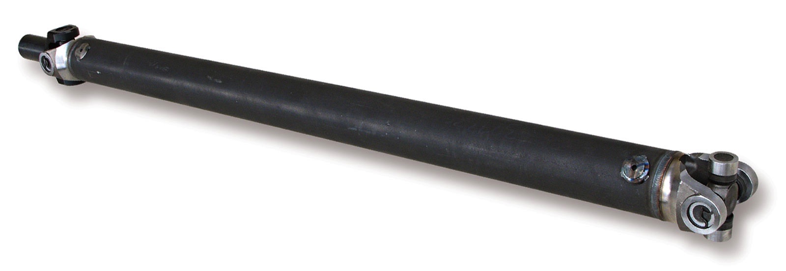 We custom build driveshafts to length depending on the type of transmission that is used. Some of the newer transmissions have a fixed yoke and require a special splined driveshafts that "slips" in the middle.