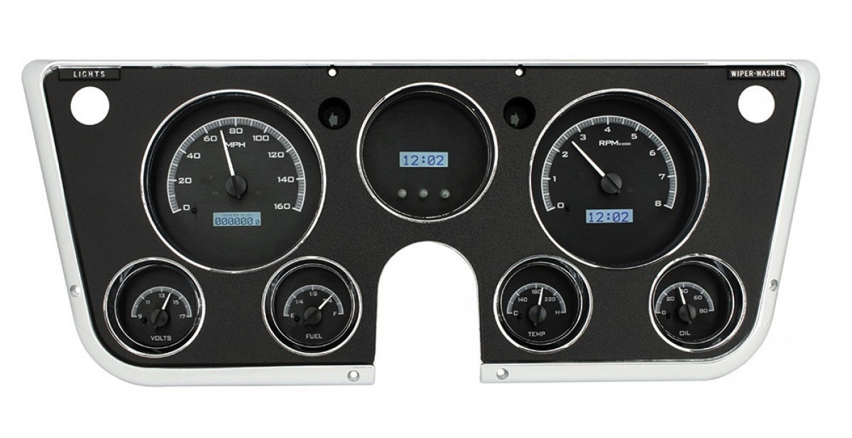 The stock mechanical gauges in older vehicles will not work with LS or LT conversions. LS/LT Engines require gauges that are capable of receiving electronic signals from the ECMs. SPS offers Instrument cluster upgrades that fit in the existing dash and does not change the factory look or design. These gauges are available in an analog or digital design.